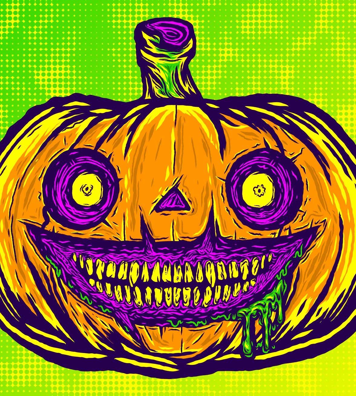Designed with T-shirts and buttons in mind, the artwork features a grody old skull riddled with jagged chompers, letting out the most metal of wails.